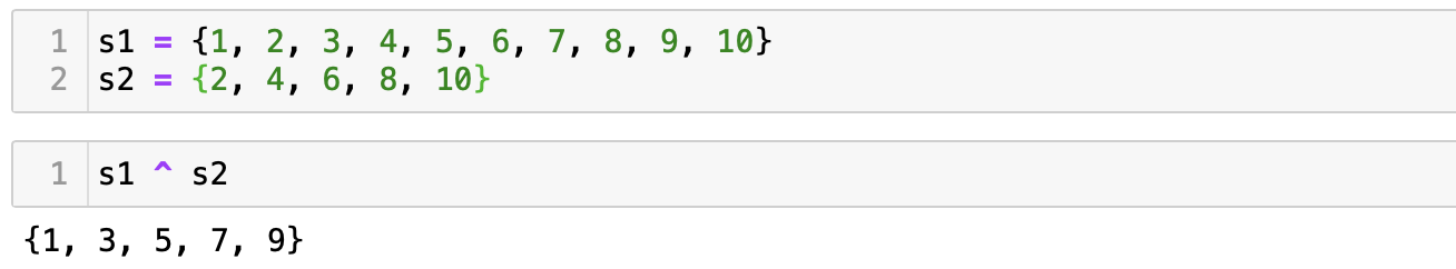 집합 A와 집합 B의 교집합을 제외한 나머지를 구하고 싶다면 ^ 기호를 사용하면 된다.