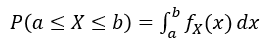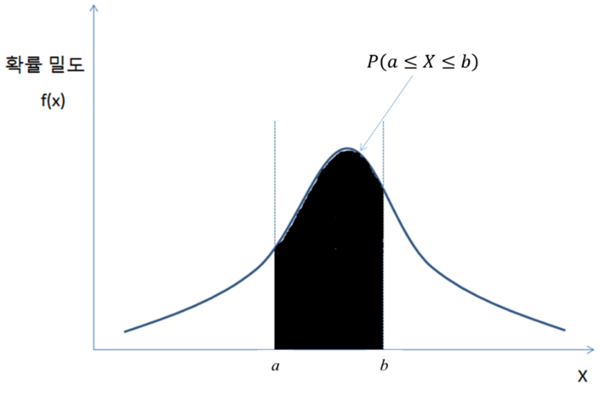 - 즉, 변수가 특정 구간 사이의 값을 취할 확률 X ∈ [a, b] 즉, a≤X≤b일 확률이 중요