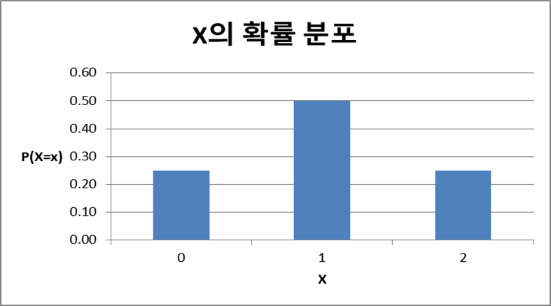 변수 X : 두 개의 동전을 동시에 던질 때 나오는 앞면의 수
