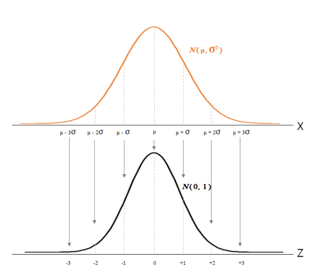 - 표준화된 새로운 값을 Z값이라고도 함.