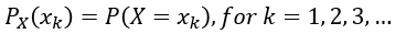 - 이산변수 X의 확률 질량함수의 값은 'X가 특정한 값을 취할 확률'을 의미함.