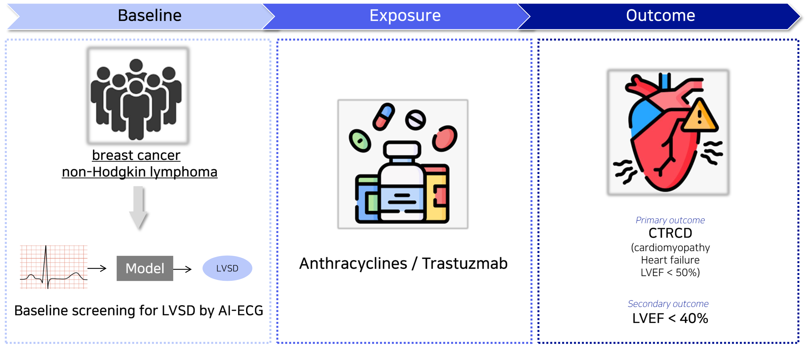 - 현재 각 환자 별 CTRCD가 발생될 위험도에 따라서 효과적인 치료 프로토콜을 설계할 필요성이 제기되고 있고, 특히 암 & 종양 환자에게 치료를 적용하기 전, CTRCD 발생이 예상되는 고위험군 환자를 미리 정확하게 식별하는것이 필요한 상황이다.