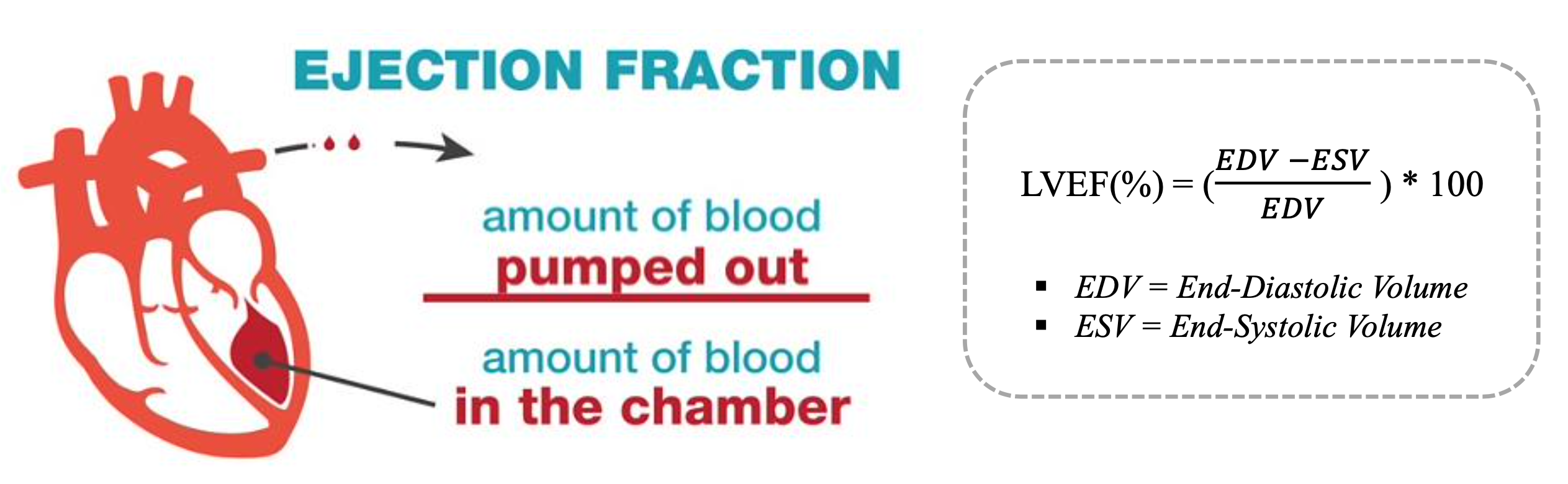 - 따라서 이 좌심실이 혈액을 잘 펌핑하고 있는지에 대한 평가 지표로 'Ejection Fraction'이라는 개념이 있다.