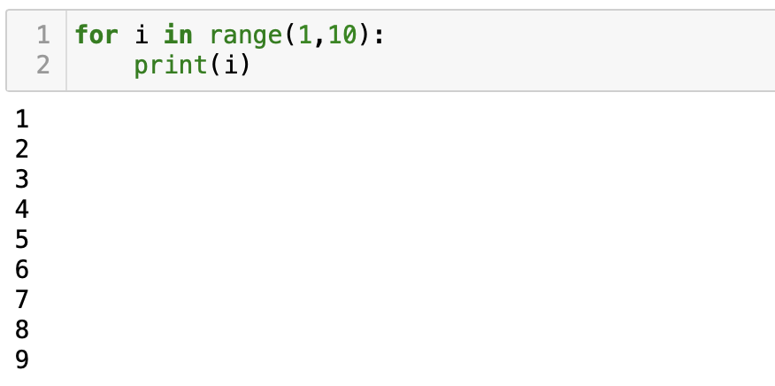 range( ) 함수는 for문과 자주 쓰이므로 알아두는 것이 좋다. 예를 들어 1부터 10까지의 값을 모두 출력하고 싶을 때 for문과 리스트 [1,2,3,4,5,5,6,7,8,9,10]으로 표현할 수 있지만, 만약 1부터 100까지의 값을 출력하고 싶을 때 100가지의 값을 모두 쓰기에는 너무 번거롭다. 이러한 경우 사용할 수 있는 것이 range함수이다. 1부터 10까지의 값을 range함수를 이용하여 나타내고 싶다면 range(1,11)로 표시해주면 된다. 즉, range함수의 괄호 안에 두 값들을 (이상, 미만)이라는 의미로, (1,11)은 1보다 크거나 같고 11보다 작은 값이라고 생각하면 된다.
