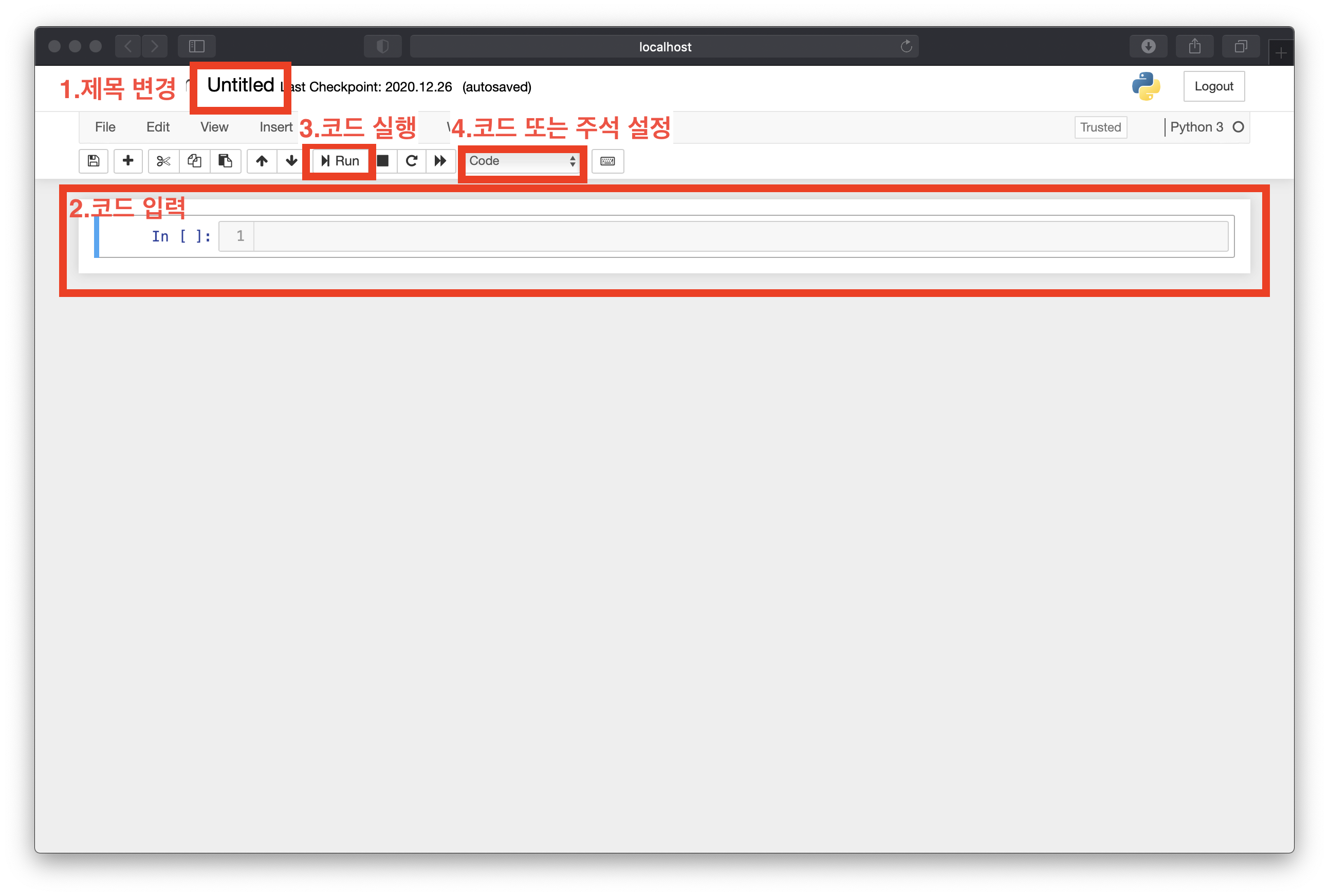 | 3) 코드 실행 | 단축 키 : Shift + Enter |