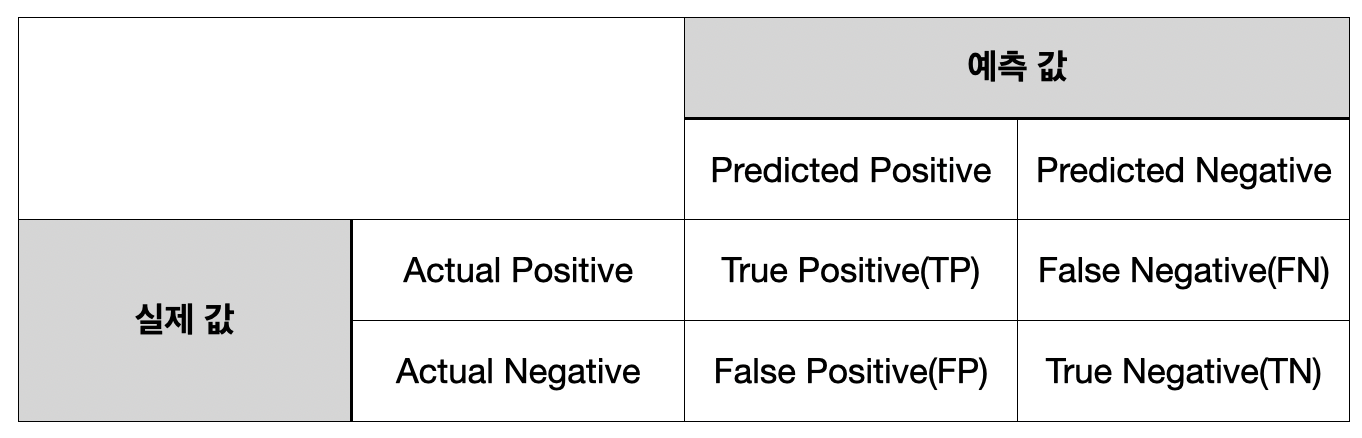(파이썬과 R에서 예측값-실제값의 위치가 다름, 아래 표는 파이썬 기준)