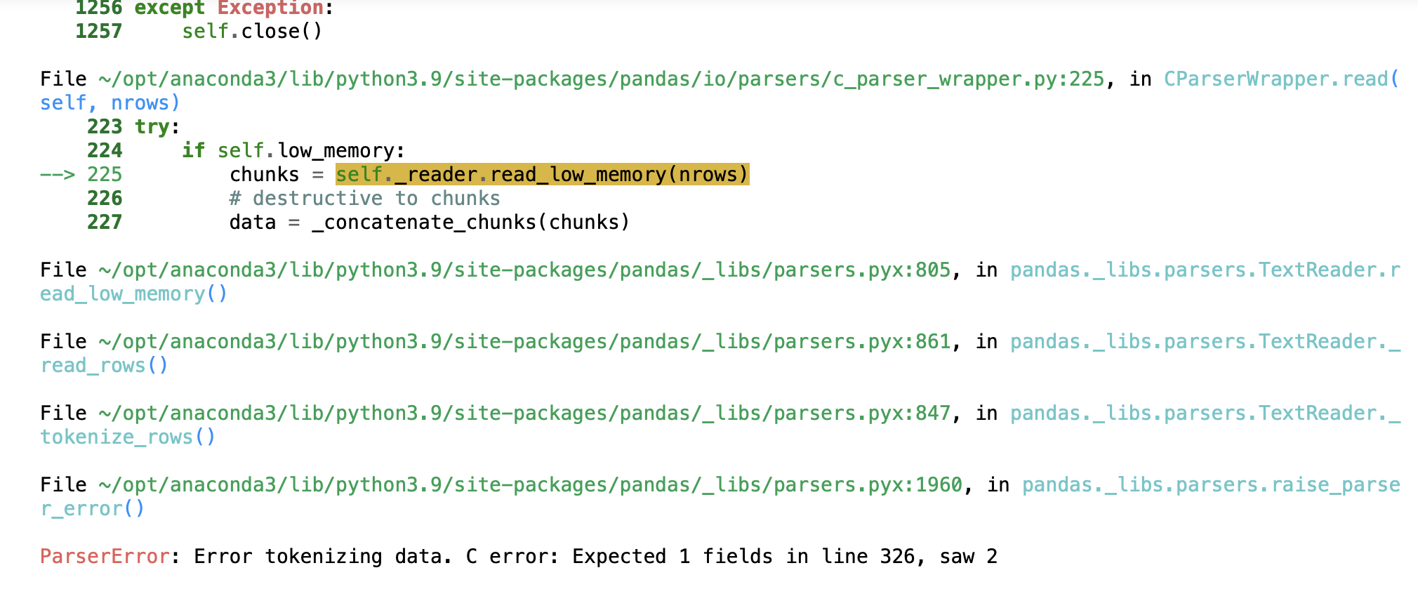 tsv 파일을 pd.read_csv로 불러왔을 때 ParserError가 발생하였다.