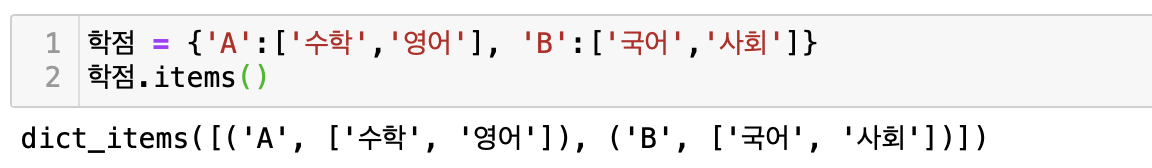 7) 딕셔너리의 key와 value를 쌍으로 출력할 때 : .items( )