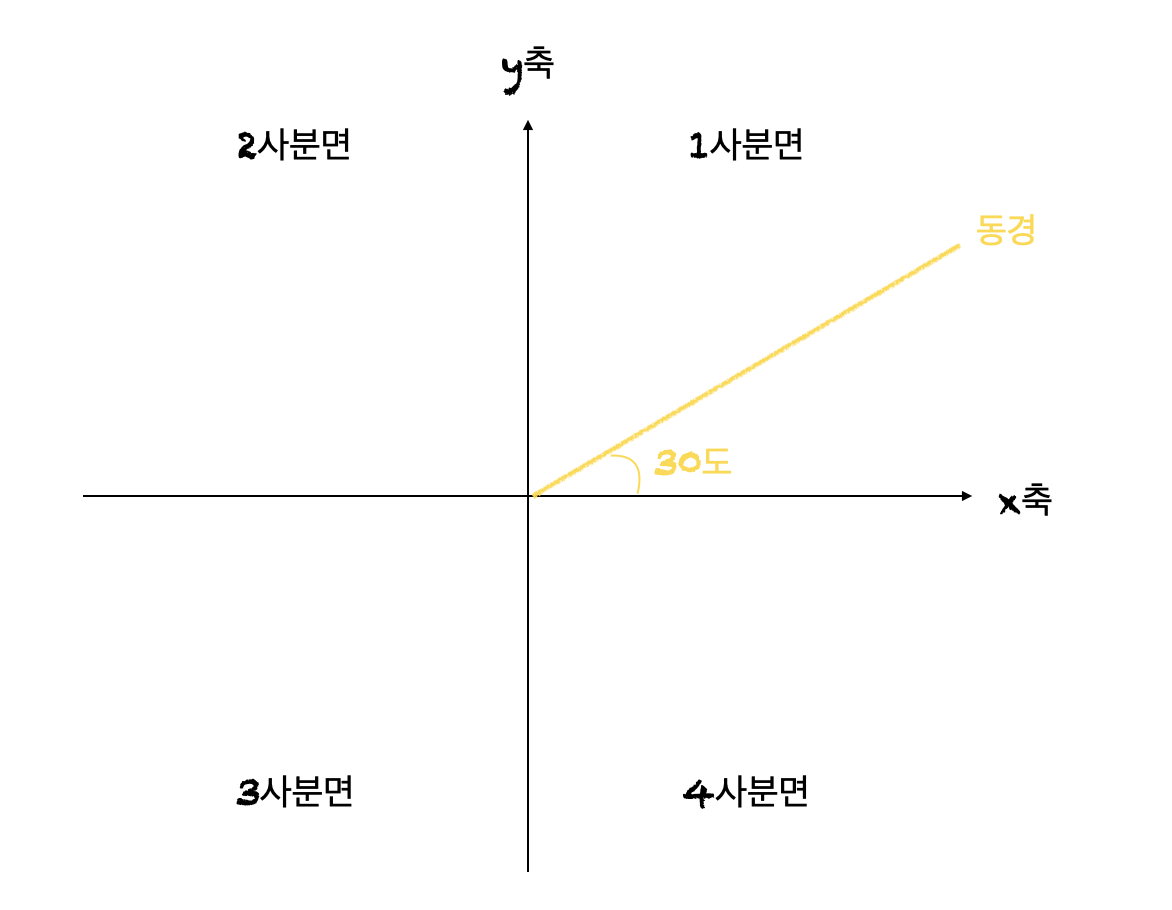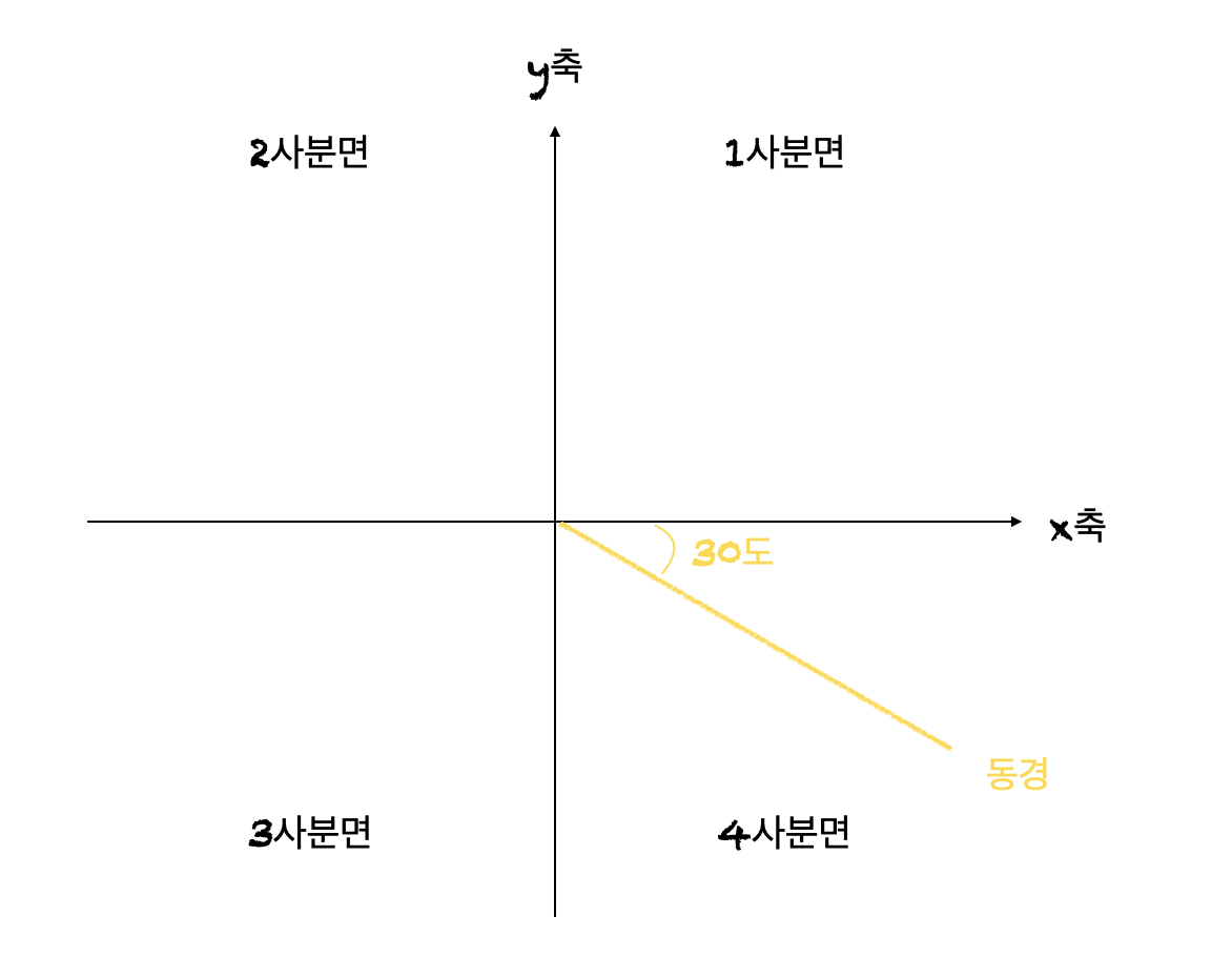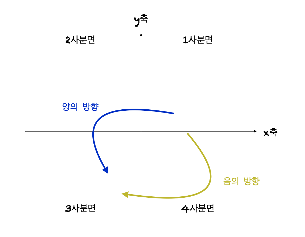 또한 시초선을 시작으로 1->2->3->4분면 방향은 '양의 방향'