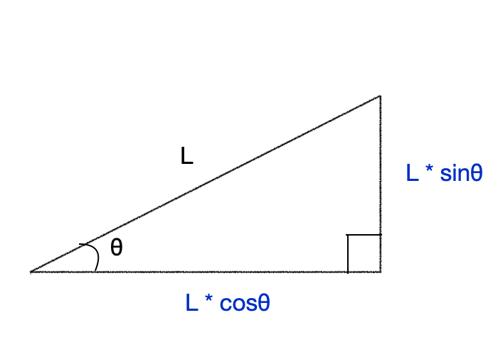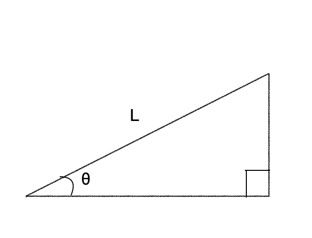 마찬가지로, 직각 삼각형에서 하나의 예각(θ)과 하나의 변의 길이(L)가 주어져있을 때,