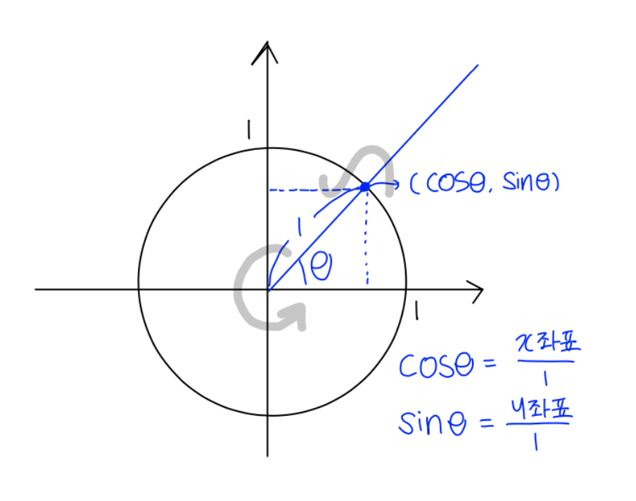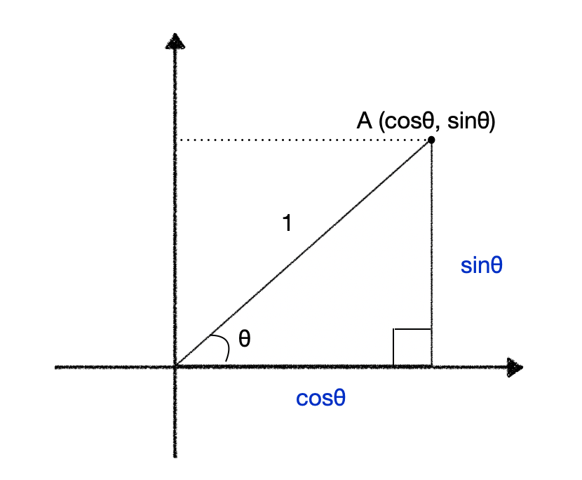 점 A의 좌표는 (cosθ, sinθ)가 된다.